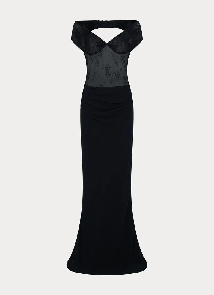 The Elina Maxi Dress is pure elegance with a touch of allure. Featuring an off-shoulder neckline and a semi-sheer bodice, it drapes effortlessly to create a sultry silhouette. Perfect for golden skies and unforgettable nights, this dress is made for those who live for evening glamour and chic sophistication.